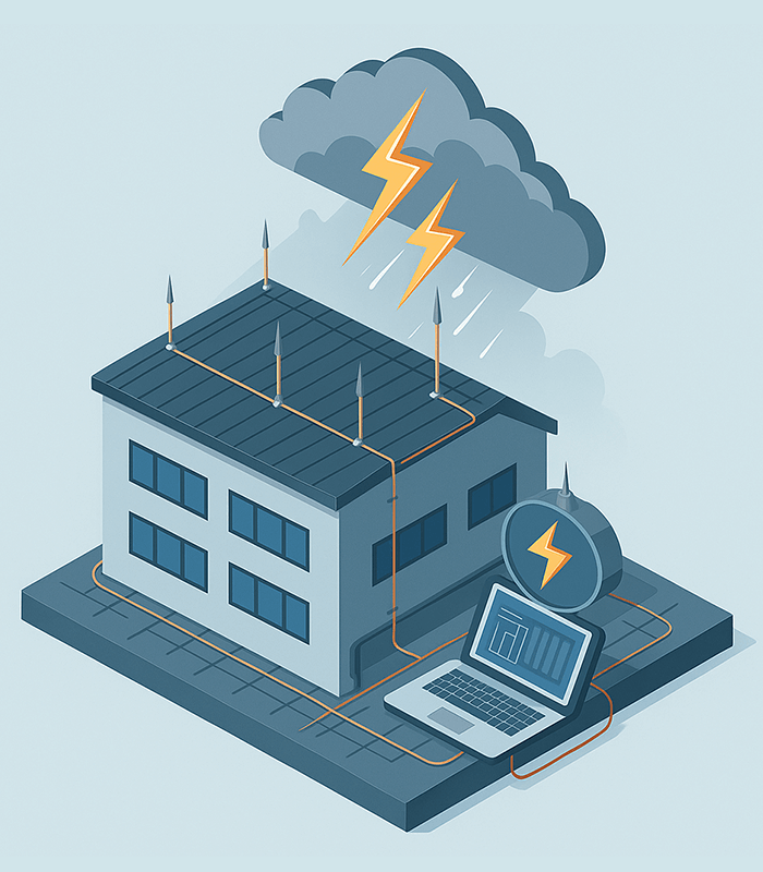 O SPDA é essencial para reduzir os riscos de incêndios, queima de equipamentos eletrônicos e interrupções operacionais causadas por descargas atmosféricas diretas ou induzidas.