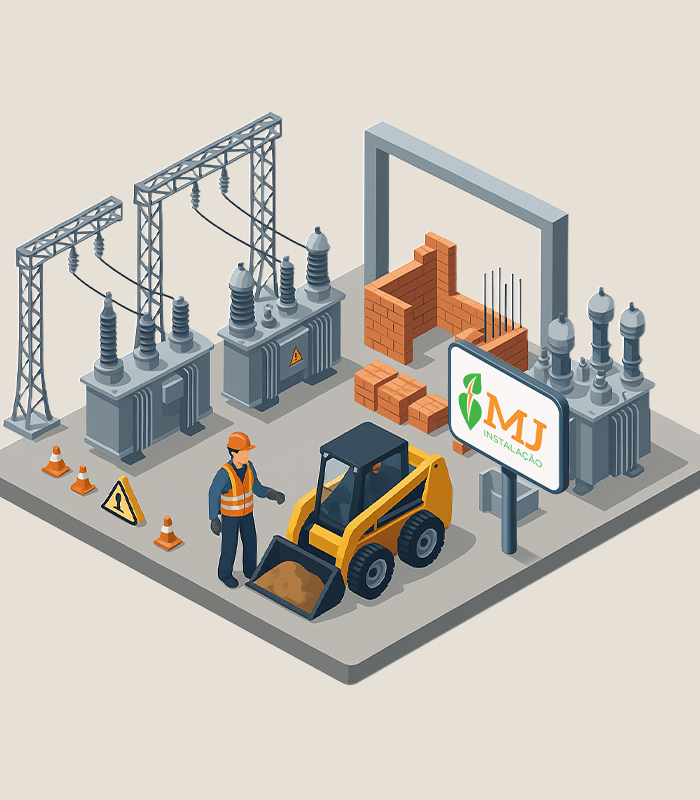 A MJ Instalação é especializada na construção de subestações de energia em média (MT) e alta tensão (AT), oferecendo soluções completas para atender às demandas de distribuição e transmissão elétrica em projetos industriais, comerciais e de infraestrutura pública.